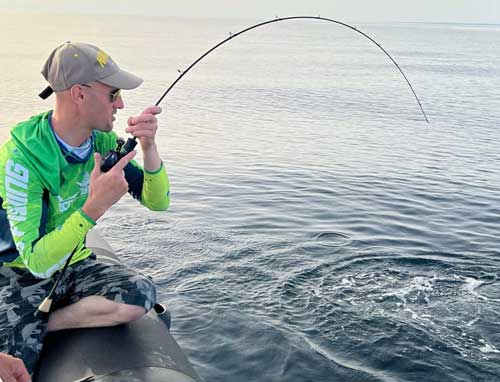 Dans tous les cas, inutile d'animer le leurre jusqu'en surface; la plupart des touches ont lieu au raz du fond, ou dans le 1er tiers de la profondeur.